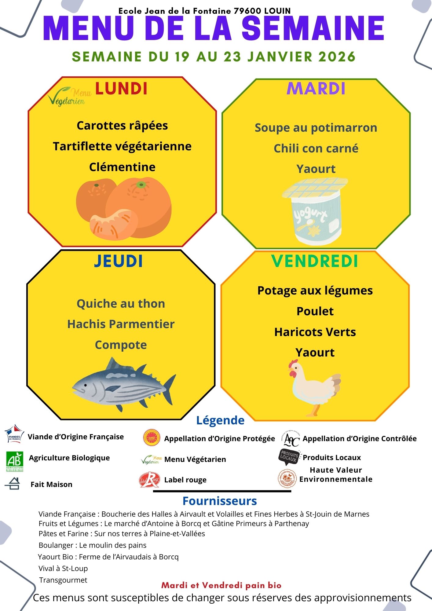 Cliquez ici pour télécharger le menu de la semaine